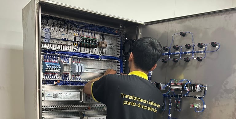 Somos especialistas na montagem de painéis elétricos, oferecendo soluções que unem segurança, qualidade e acabamentos personalizados. Cada projeto é tratado com o máximo cuidado e dedicação, como se fosse para nós mesmos. Nosso compromisso é transformar a sua necessidade em um painel de excelência, com a segurança e o acabamento que o seu projeto merece.